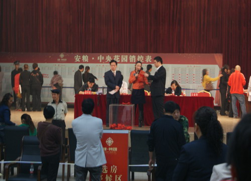 2010年10月11日上午七時,安糧·中央花園在蕭縣鳳山國際大酒店大禮堂舉行了二次推盤活動。作為9月25日開盤的延續,公司為本次開盤活動前期做了大量的研究和準備工作,并得到了地產公司領導的重視和關注。本次共推382套房源,從開盤當日情況來看,現場秩序井然,客戶選房熱情高漲,當日完成大定135套,與9月25日的136套結合,已完成銷售271套,去化率達70.9%。直至活動結束后,趕到現場選房的客戶仍然絡繹不絕。