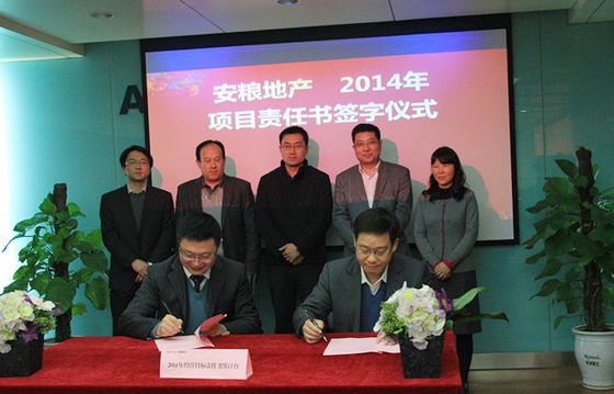 會議還聽取了各部室和各項(xiàng)目公司年度工作總結(jié)和計(jì)劃匯報,并在所有與會人員的見證下,臨沂、蕭縣、安福、東怡、和縣、銅陵、徐聞7個項(xiàng)目公司負(fù)責(zé)人與總經(jīng)理汪勇簽署了2014年經(jīng)營目標(biāo)責(zé)任狀。