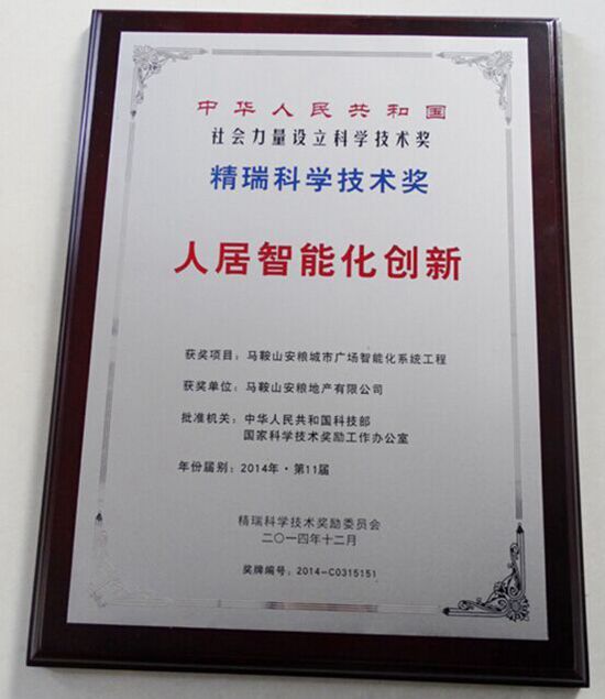全聯(lián)房地產(chǎn)商會(原全國工商聯(lián)房地產(chǎn)商會)2014年度年會于2014年12月13-14日在北京召開,第11屆精瑞獎頒獎典禮同期舉行。我司“馬鞍山安糧城市廣場智能化系統(tǒng)工程”榮獲第11屆領先技術產(chǎn)品類精瑞獎。