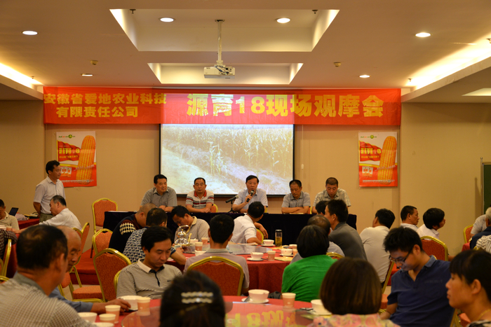 9月21日-22日,愛地農業在阜陽市組織舉辦了雜交玉米新品種“源育18”品種田間展示現場觀摩會。來自全省玉米種植區域的市、縣、鄉鎮經銷商及部分種植大戶150多人參加了此次會議。阜陽市農委、阜陽市種子管理站、阜陽市工商局的主要領導、安糧控股副總裁曹訓立應邀與會。
