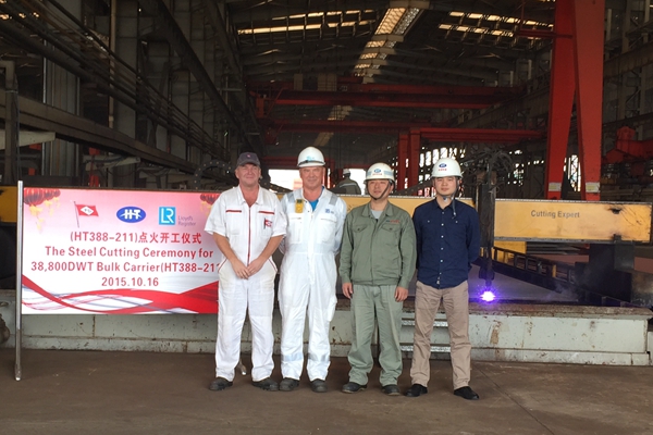 10月16日,安糧國際與江蘇韓通船舶重工有限公司聯合建造的38800噸雙殼散貨船開工儀式在韓通船廠舉行,德國船東PD駐廠代表、勞氏船級社驗船師等共同參加了開工儀式。