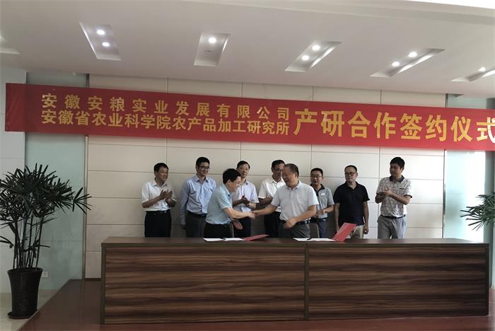 9月19日,安徽省農業科學院副院長畢小彬一行,來到安糧(巢湖)食品工業園進行調研考察并簽訂了產研合作戰略協議。省農科院農產品加工研究所所長錢坤,安糧集團黨委委員、監事會主席、安糧控股副總裁曹訓立,安糧實業董事長吳國杰等陪同考察并參加簽約儀式。
