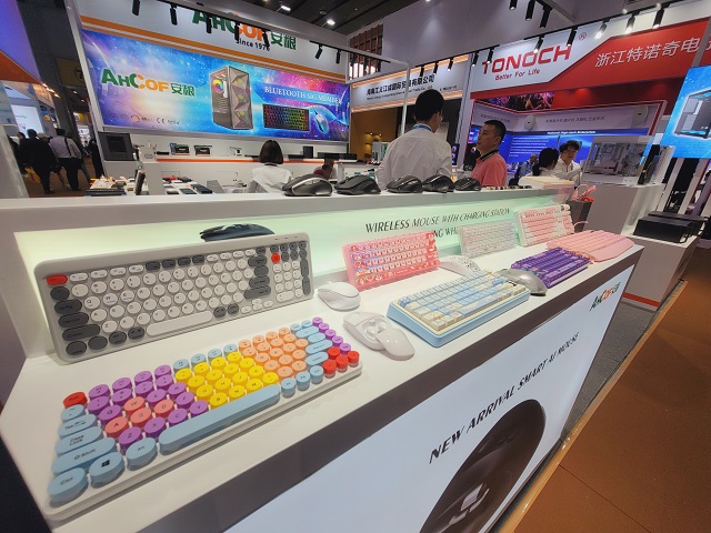 南方一部在本屆廣交會(huì)一期主要參展游戲電腦機(jī)箱產(chǎn)品,從入門級(jí)到高端游戲機(jī)箱齊全。部門在營(yíng)銷展示上采用一系列新穎的形式,展臺(tái)的主通道采用目前比較流行的魚缸游戲機(jī)箱作為看點(diǎn),用可藍(lán)牙連接手機(jī)和電腦的高端游戲機(jī)箱吸引客戶。為了突出參展效果,所有游戲機(jī)箱都裝上了RGB變色風(fēng)扇。多樣化的變色風(fēng)扇與南方二部的機(jī)械鍵盤吸引了大量客戶駐足觀看。消費(fèi)電子展6個(gè)攤位,突出游戲類產(chǎn)品的裝修風(fēng)格,搭配大氣的門頭、顯眼的海報(bào)燈箱,使客戶在進(jìn)館時(shí)只需一眼就能夠鎖定目光。