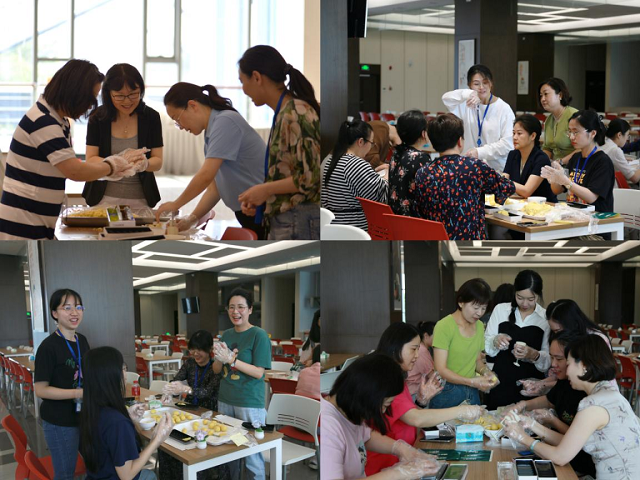 接著進入了大家最躍躍欲試的環節——DIY綠豆糕。同事們圍坐一堂,有的揉面,有的裝模,有的擺盤,有的包裝,大家一邊認真制作,一邊相互交流。在大家精心制作下,一個個、一盒盒香甜美味、花色各異的綠豆糕呈現在眼前?;顒蝇F場其樂融融,洋溢著和諧、平安與幸福的氛圍,大家一起感受親手制作綠豆糕帶來的歡樂。