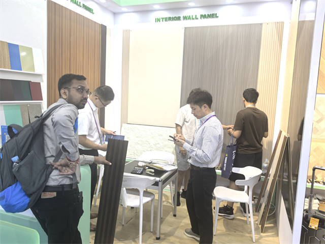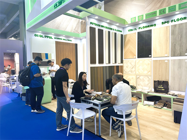 隨著全球環保意識的增強,綠色消費逐漸成為主導趨勢。在本次廣交會上,安糧針對“綠色智造”家居推出了新型室內地板、戶外墻以及室內墻板等產品。本次展出的新型室內地板采用了無醛添加的技術,不僅保障了居家環境的健康安全,還在耐用性上有了顯著提升。