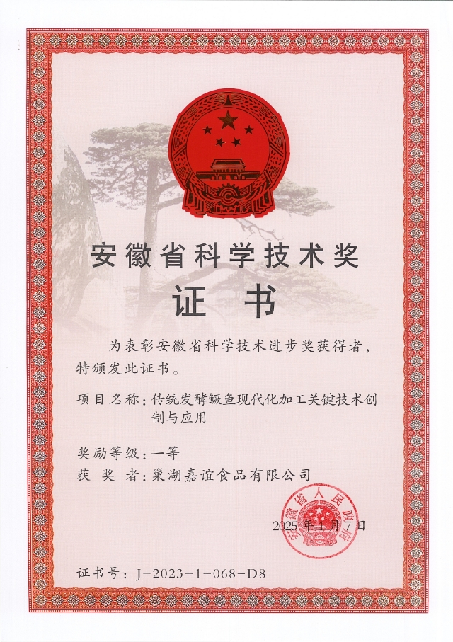 近日,安徽省科學技術獎評選結果正式公布,安糧旗下巢湖嘉誼食品有限公司憑借“傳統發酵鱖魚現代化加工關鍵技術創制與應用”項目,榮獲安徽省科學技術獎一等獎。這一重大科技成果的取得,充分彰顯了安糧堅持科技創新驅動發展、深化產學研合作的戰略成效。
